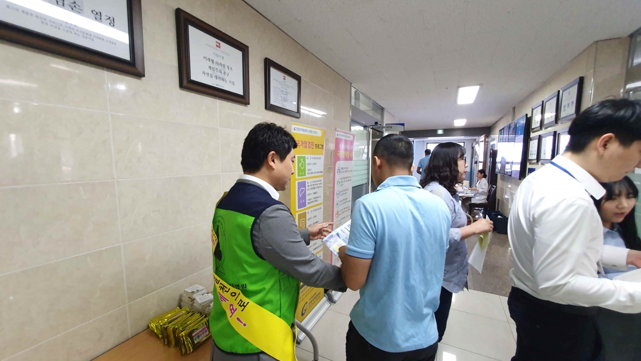 2019년 5월 30일(목) 남동공단 에몬스가구에서 임직원 200여명을 대상으로 암예방과 검진에 대해 홍보 하였습니다.