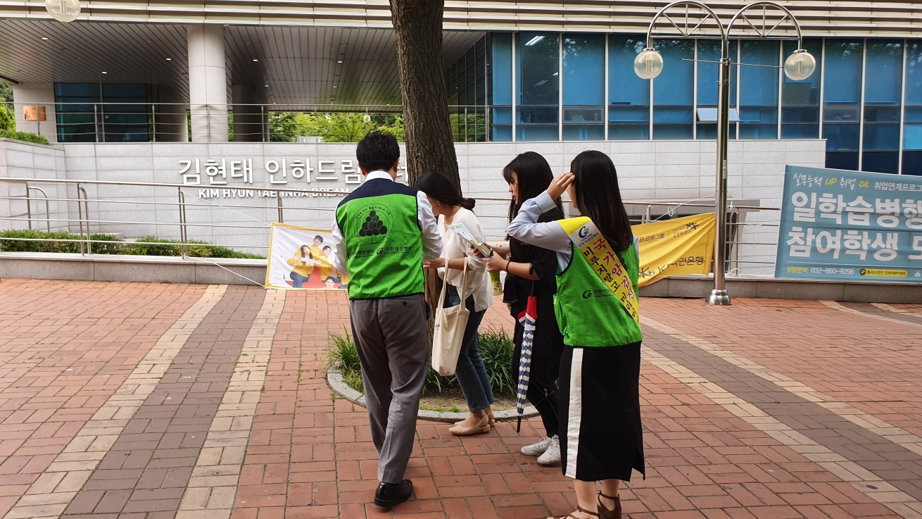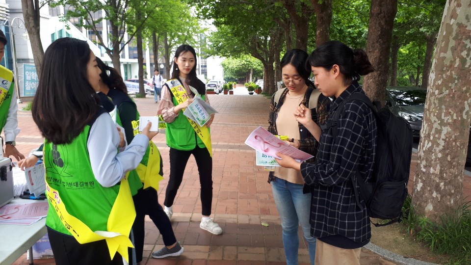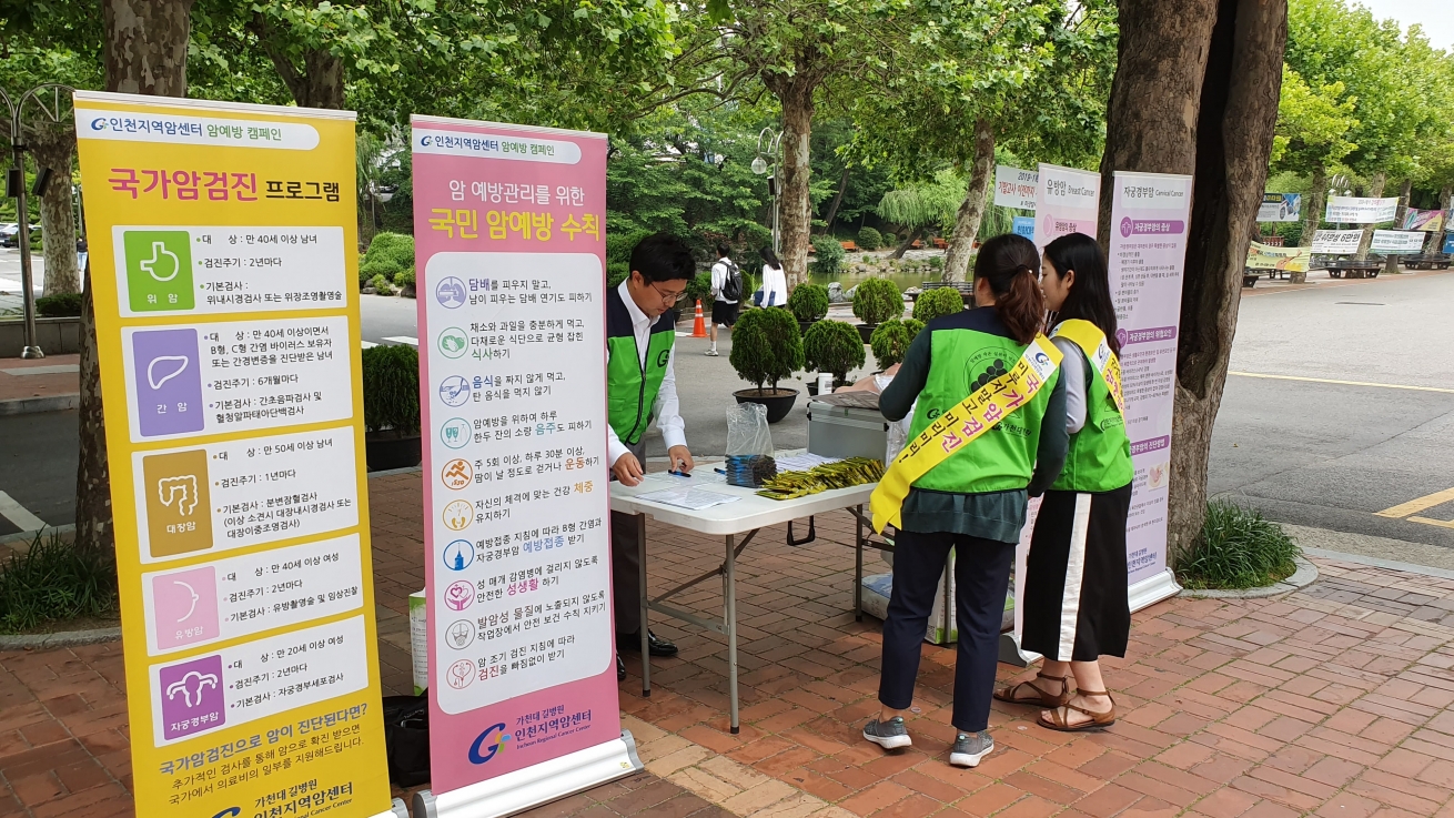 2019년 6월 18일(화요일) 인천지역암센터 암예방 서포터즈와 함께 인하대학교에서 학생을 대상으로 자궁경부암 및 유방암 검진에 대해 홍보캠페인을 하였습니다