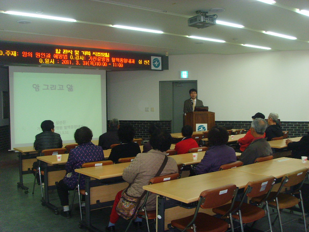 인천지역암센터에서는 혈액종양내과 심선진 교수가 참여하여 암환자 및 가족들에게 '암 그리고 앎'에 대한