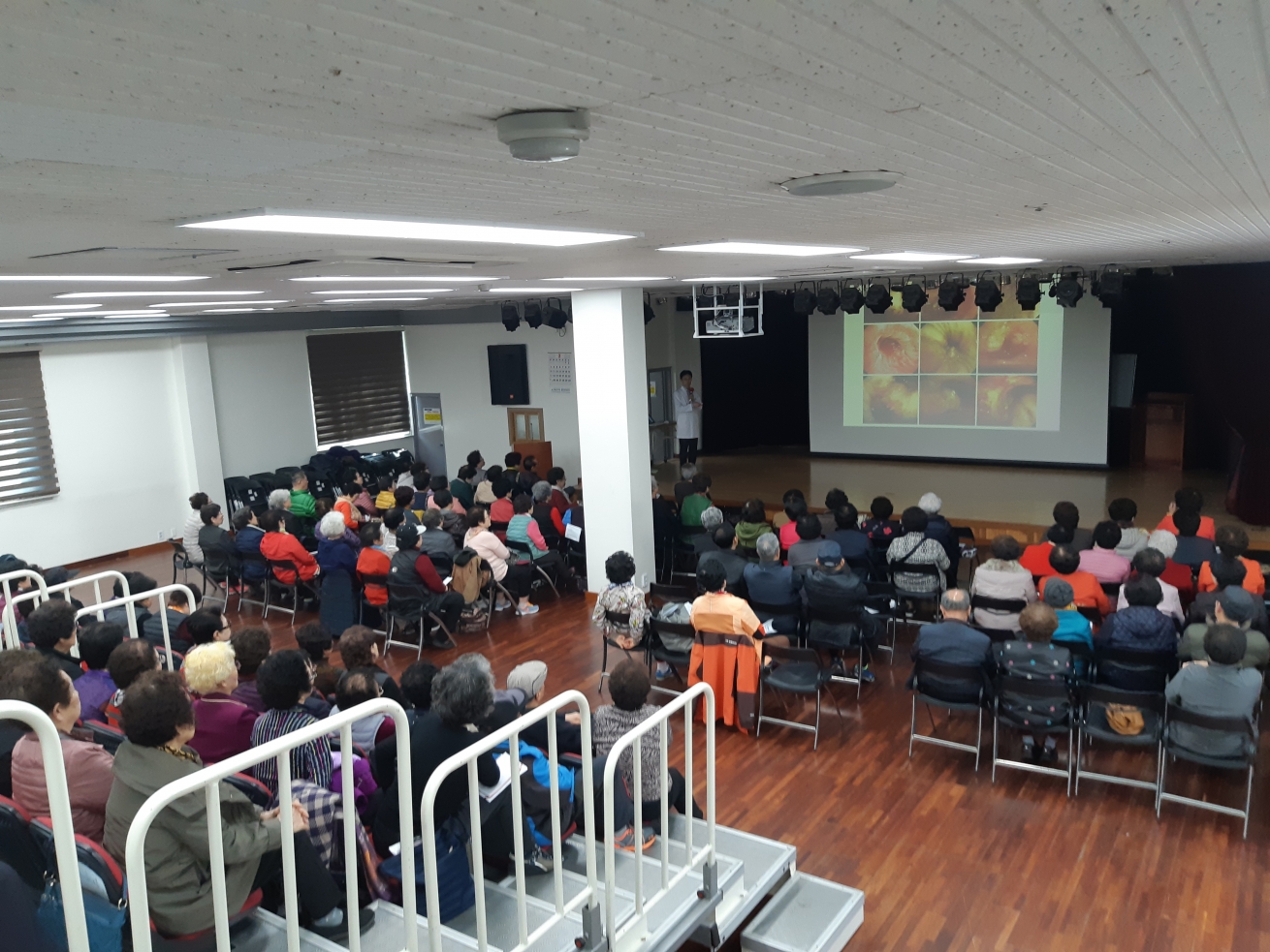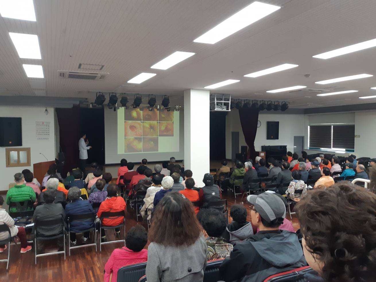 2019년 3월 26일 미추홀구 지역주민을 대상으로 미추홀구 노인대학에서 폐암 치료 및 예방관리에 대해 가천대 길병원 호흡기알레르기내과 강신명 교수가 교육을 실시 하였습니다.