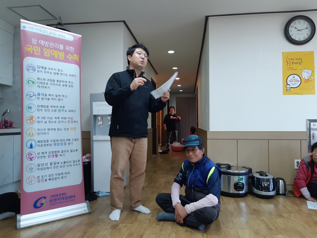 2018년 11월 13일 승봉도 도서지역주민을 대상으로 암예방 및 국가 암 검진에 대해 인천지역암센터에서 교육을 실시하였습니다.