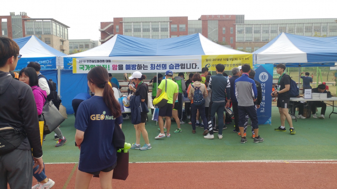 인천지역암센터에서는 2018년 10월 9일 (화) 송도 국제 마라톤 대회장에서
