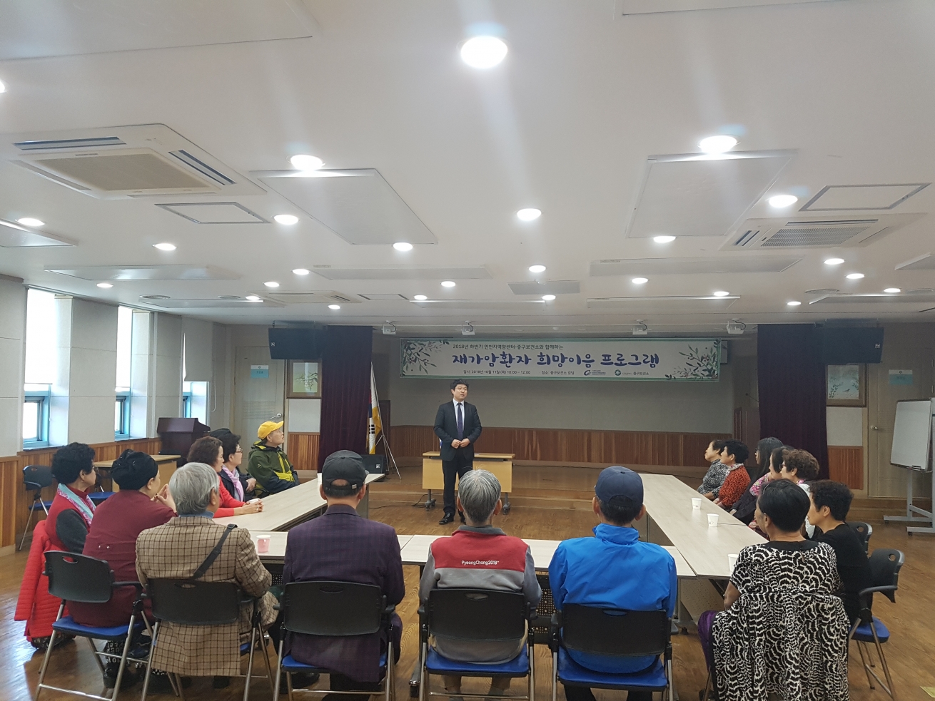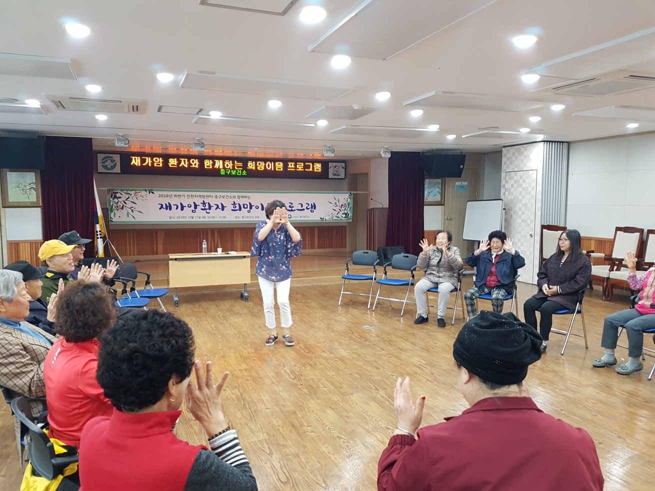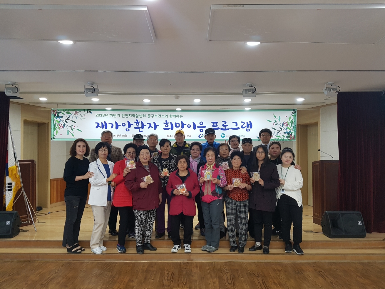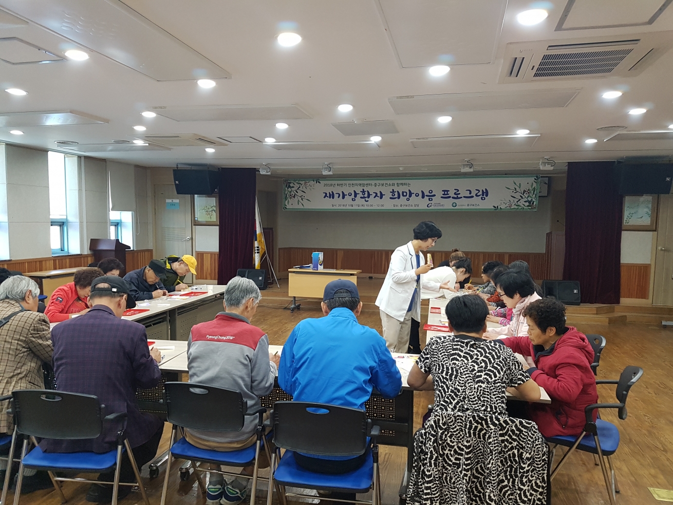 2018년 10월 11일(목) 10:00부터 12:00까지 중구보건소 에서 인천지역암센터-중구보건소와 함께하는 재가암환자 대상으로