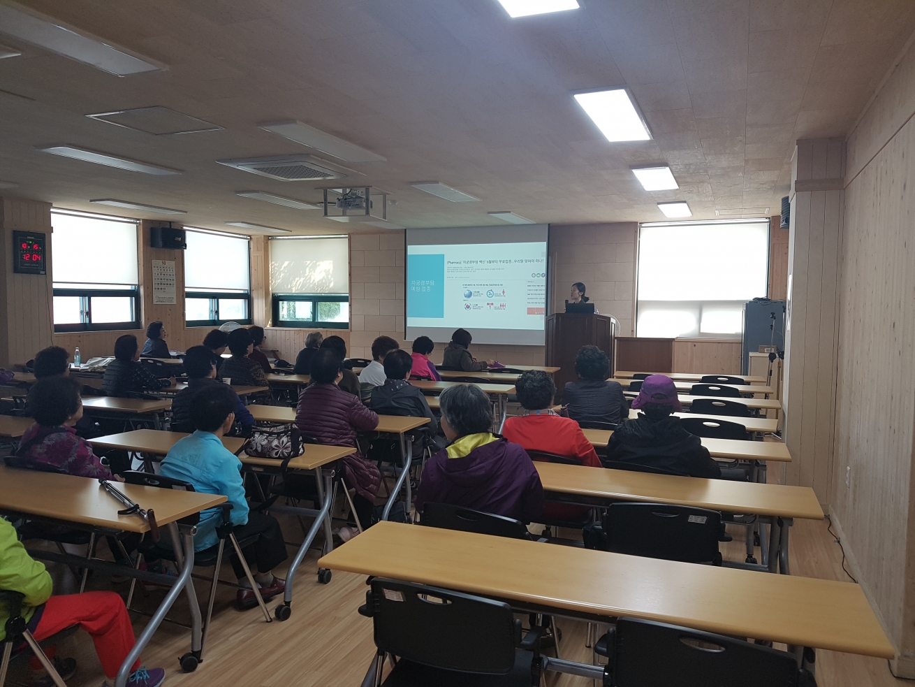 2018년 10월 15일 중구 지역주민을 대상으로 중구노인복지관에서 자궁암 치료 및 관리 대해 가천대 길병원 산부인과 공수경 교수가 교육을 실시 하였습니다.