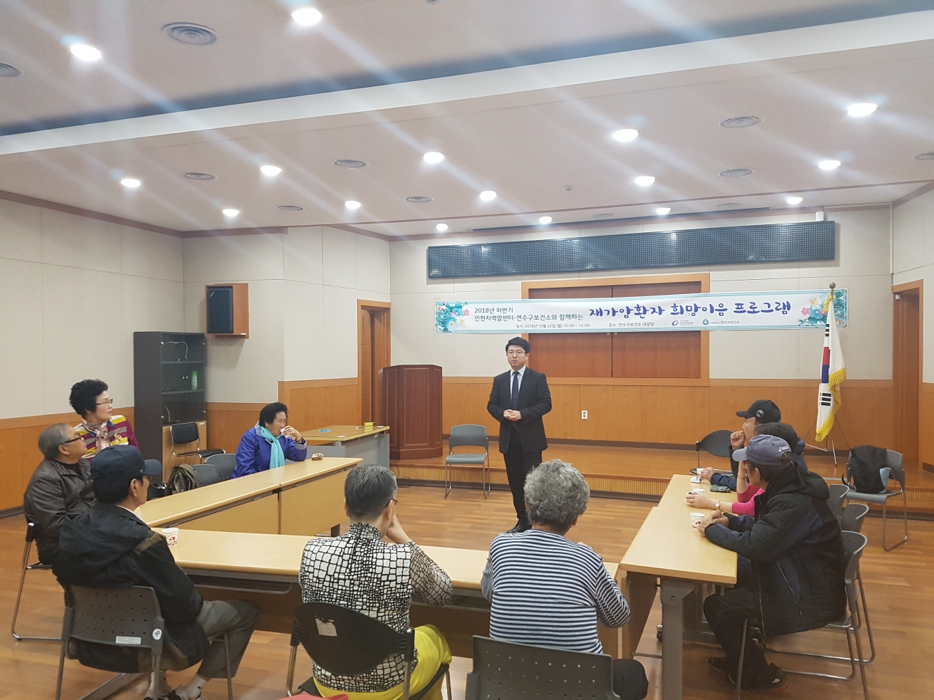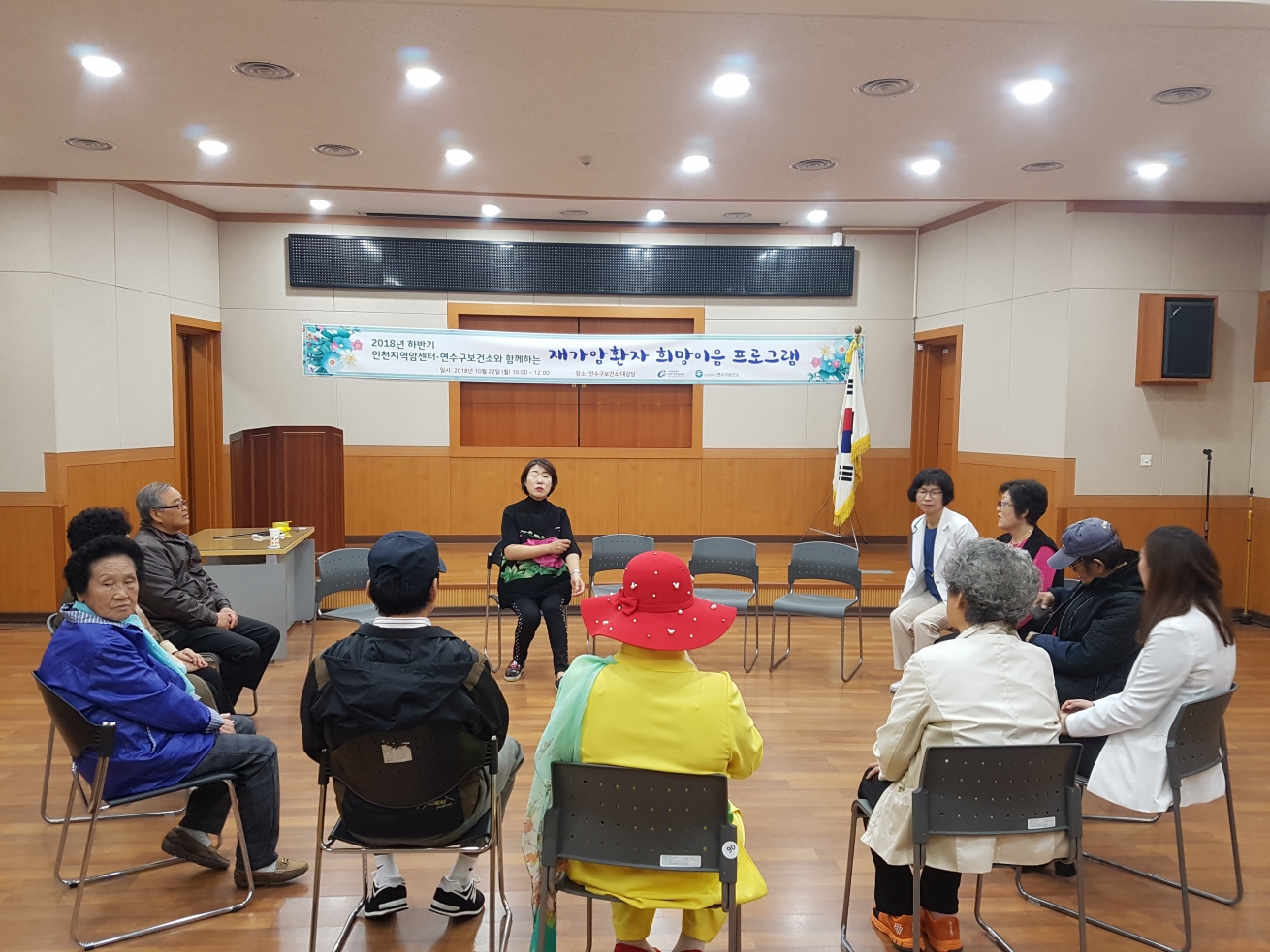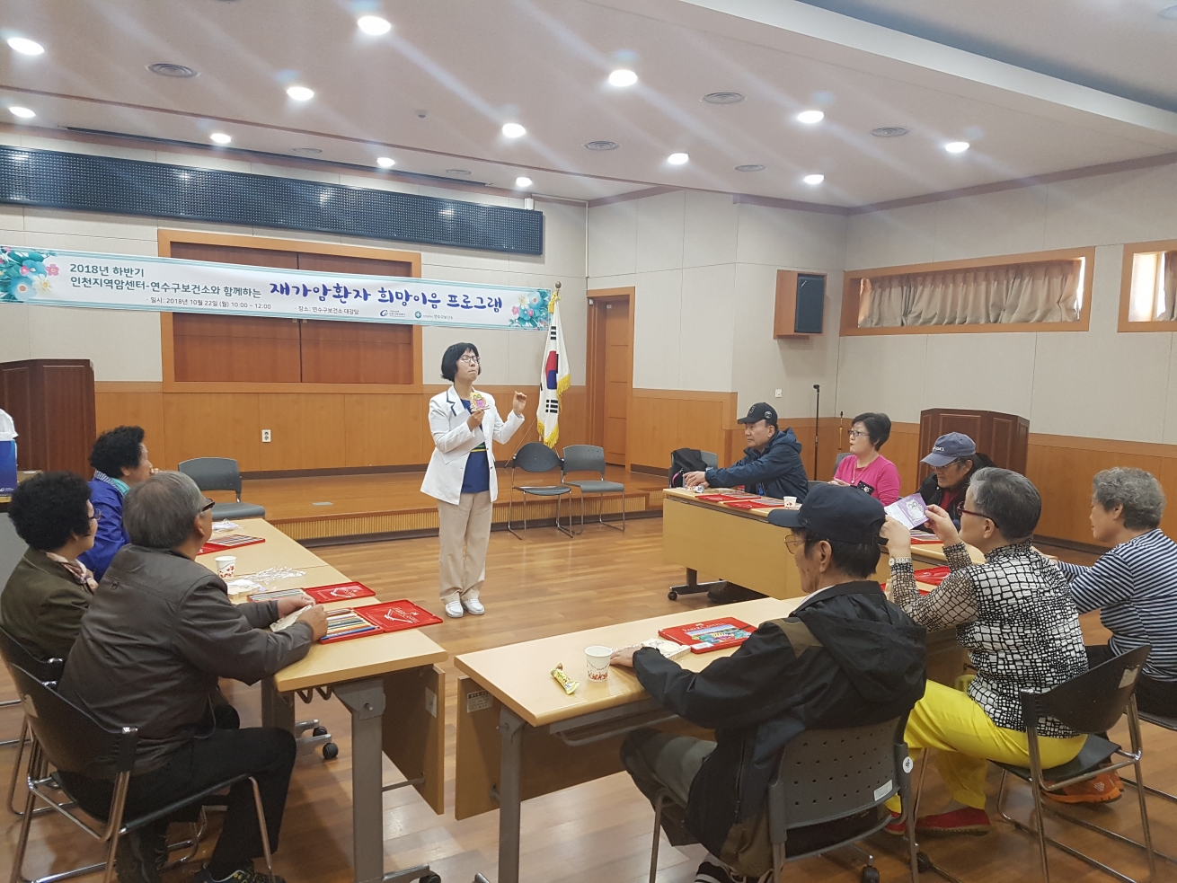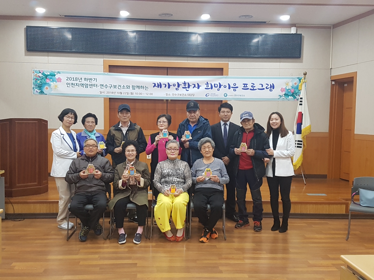 2018년 10월 22일(월) 10:00부터 12:00까지 연수구보건소 에서 인천지역암센터-연수구보건소와 함께하는 재가암환자 대상으로