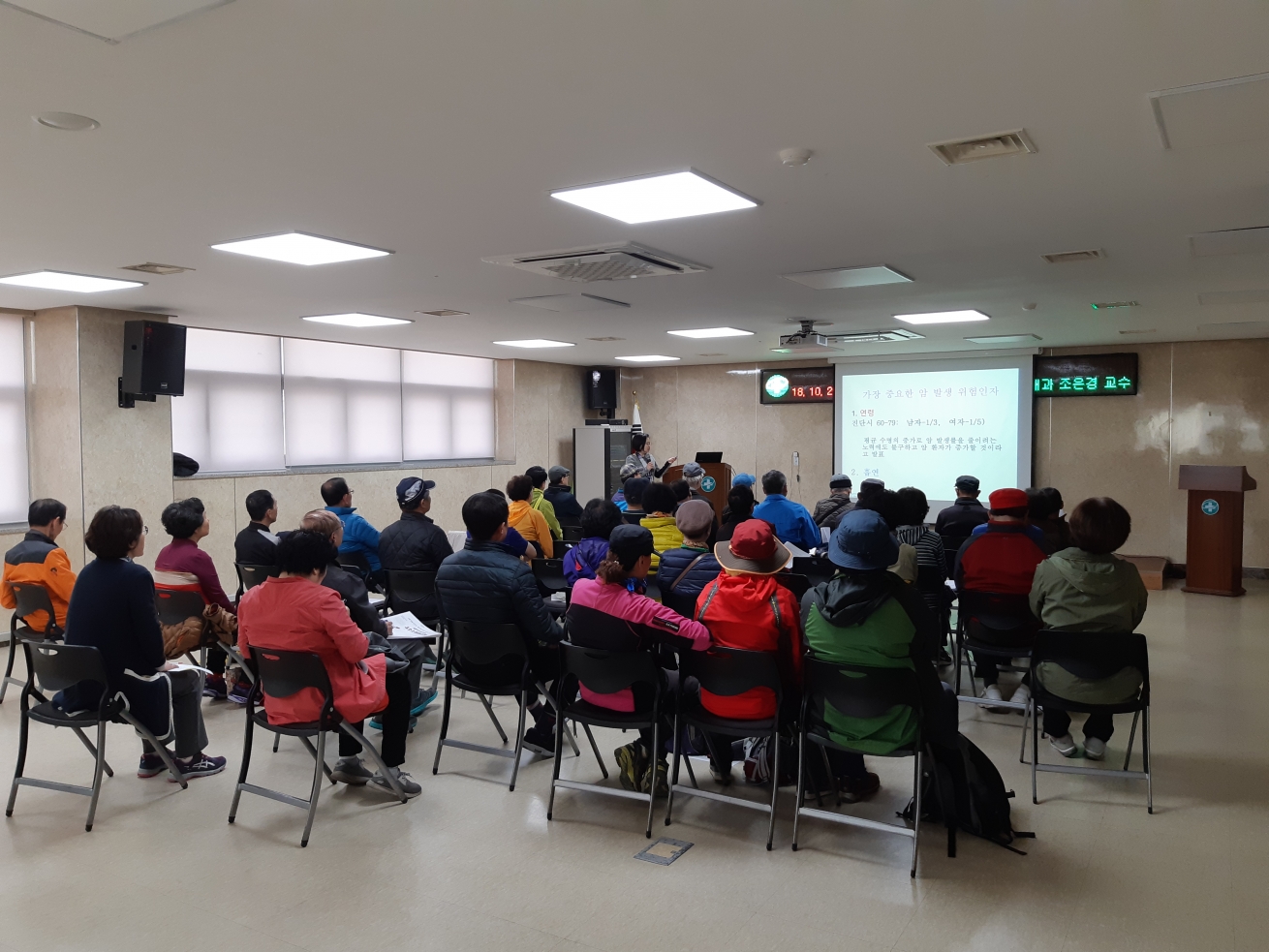 2018년 10월 25일 부평구 지역주민을 대상으로 청천보건지소에서 폐암 치료 및 예방관리에 대해 가천대 길병원 종양내과 조은경 교수가 교육을 실시 하였습니다