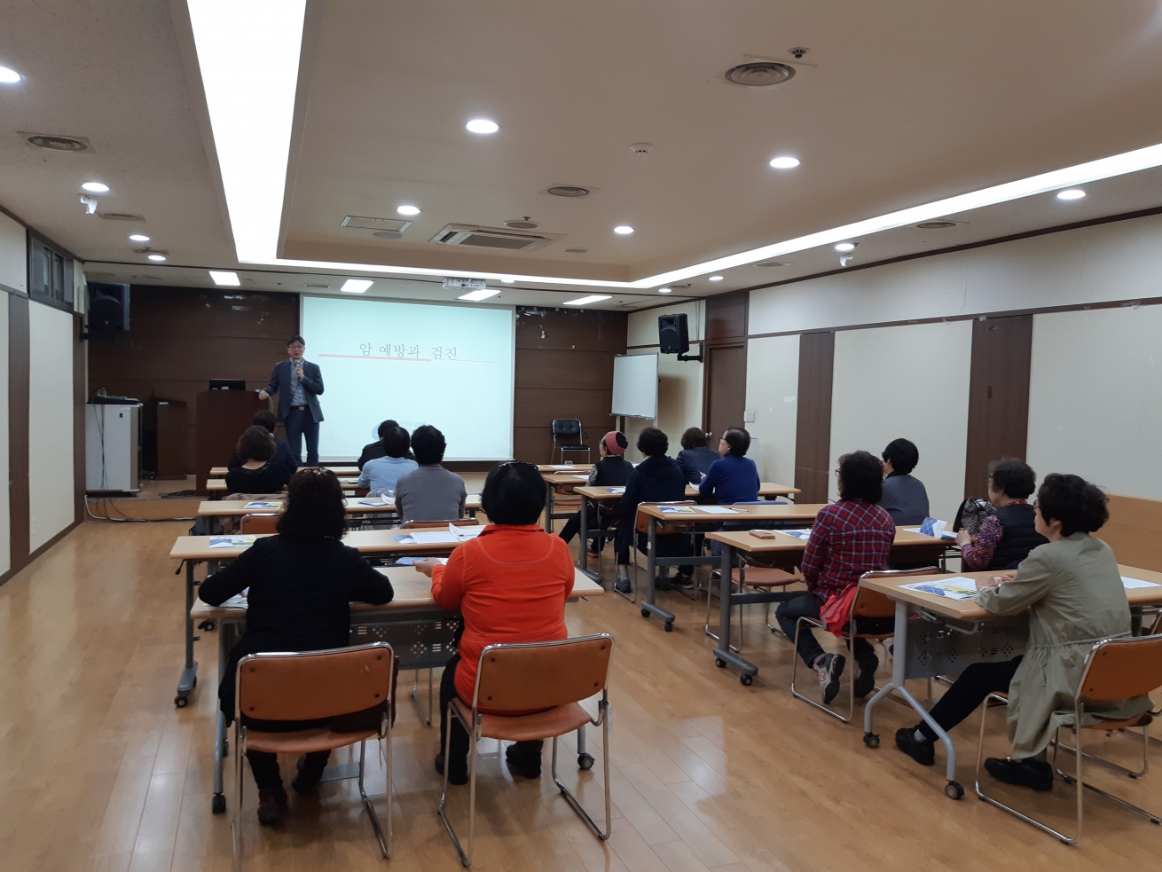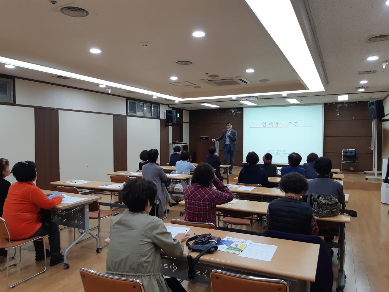 2018년 10월 25일 계양구 지역주민을 대상으로 계양구보건소에서 암예방 및 검진에 대해 가천대 예방의학과 고광필 교수가 교육을 실시 하였습니다