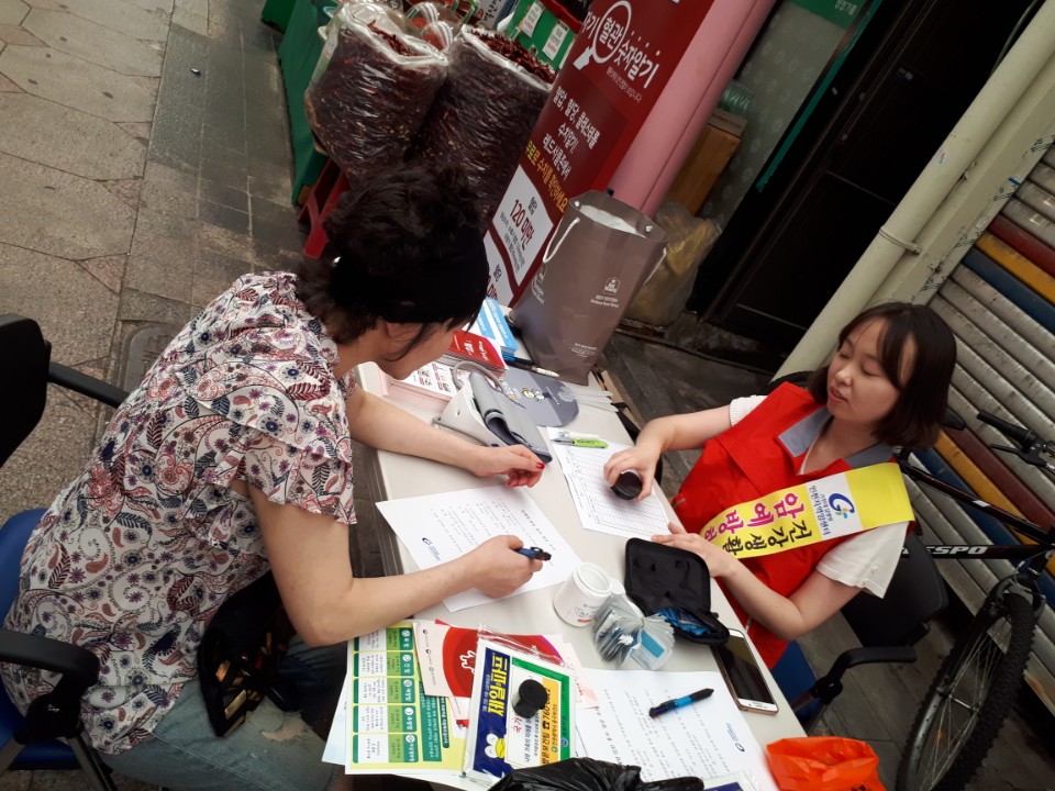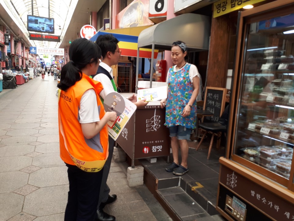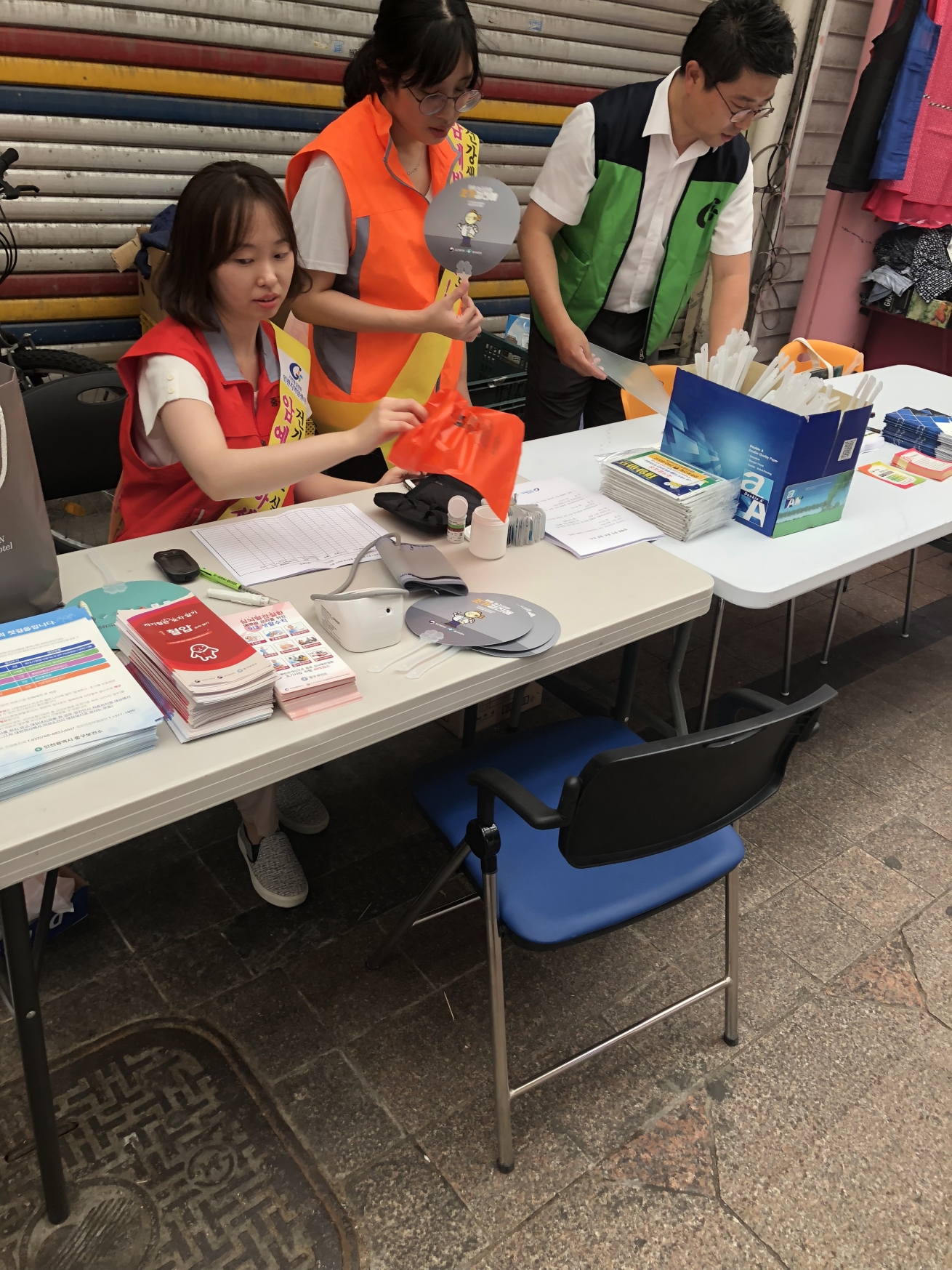 2018년 7월 18일(수요일) 인천지역암센터 암예방 서포터즈 중구보건소와 함께 중구 신포국제시장에서 인천지역 주민들을 대상으로 암예방과 검진에 대해 거리 홍보캠페인을 하였습니다.