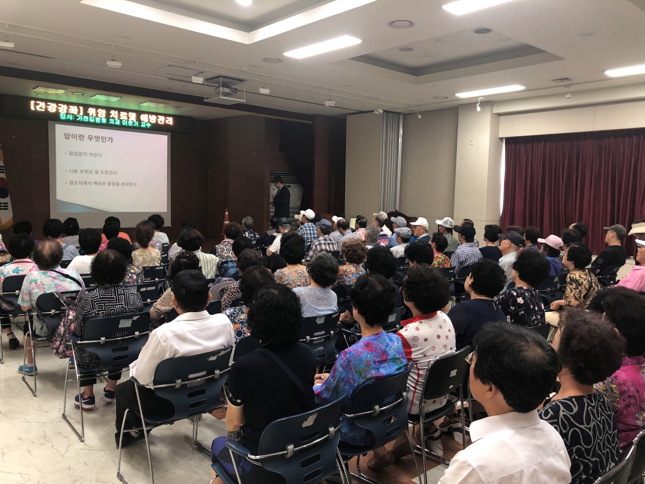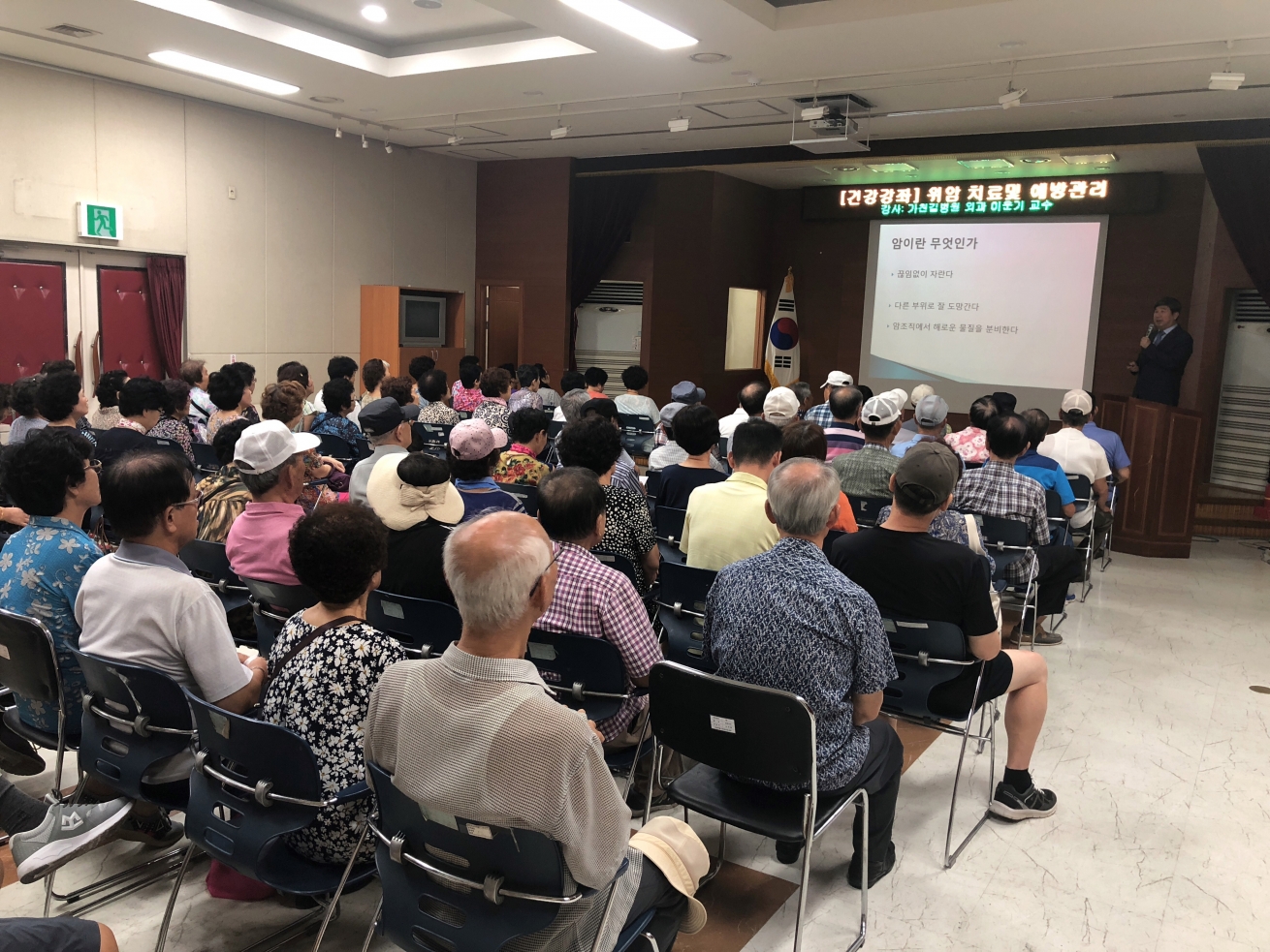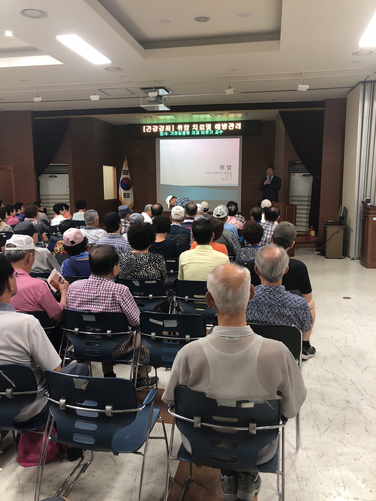 2018년 8월 20일 부평구 지역주민을 대상으로 부평구 보건소에서 위암 치료 및 예방에 대해 가천대 길병원 외과 이운기 교수가 교육을 실시 하였습니다.