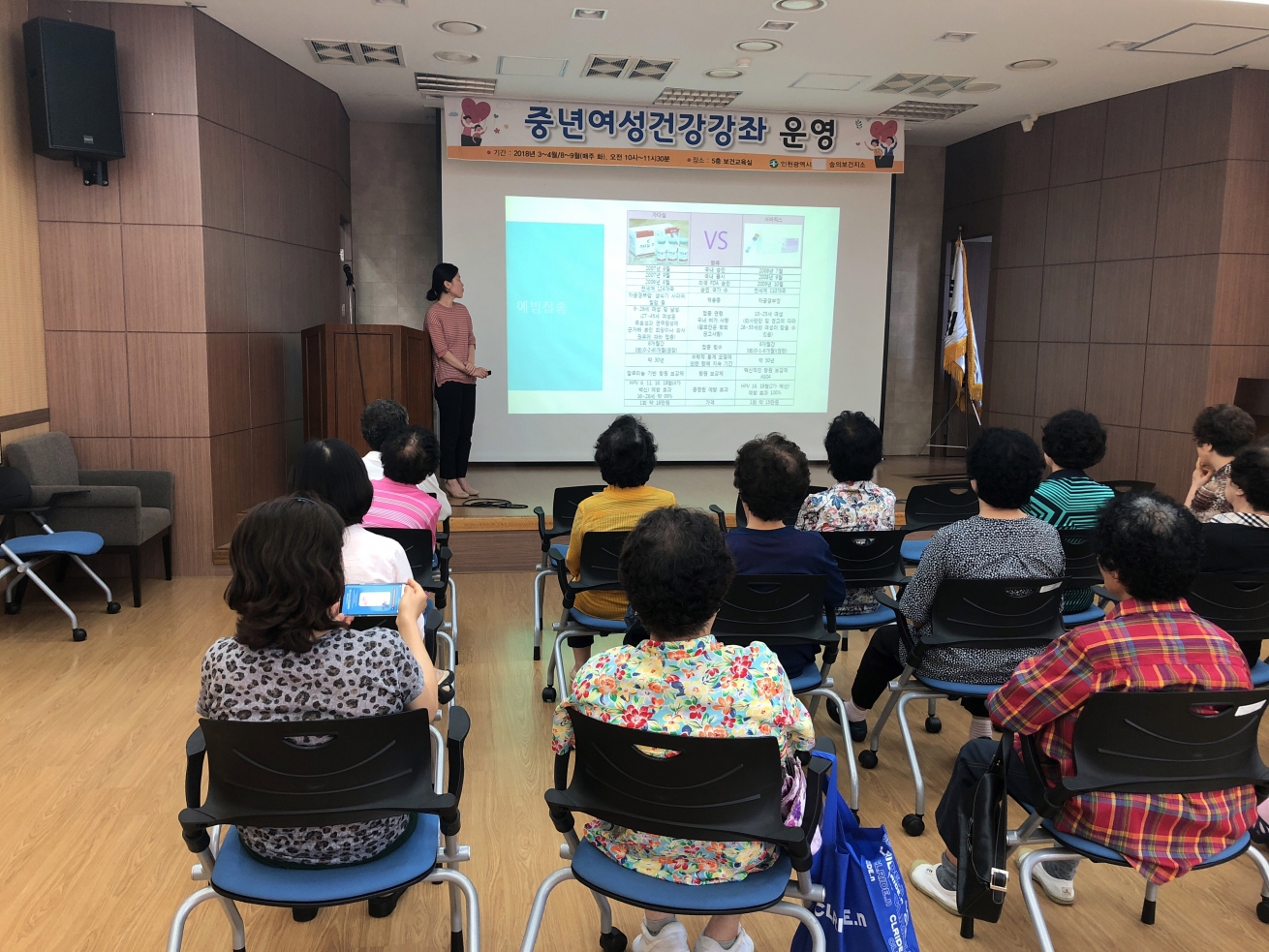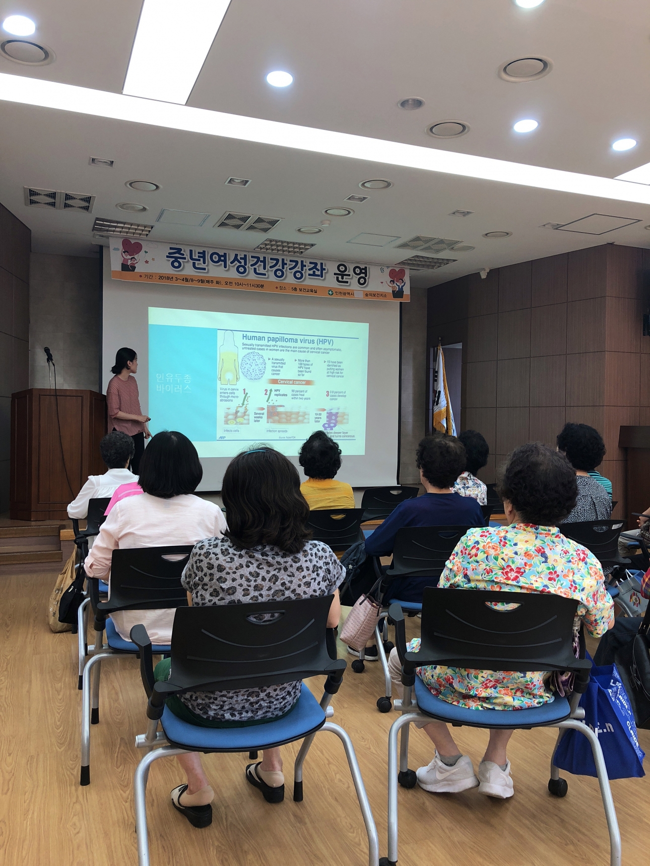 2018년 9월4일 미추홀구 지역주민을 대상으로 숭의 보건지소에서 자궁암 치료 및 관리에 대해 가천대 길병원 산부인과 공수경 교수가 교육을 실시 하였습니다.