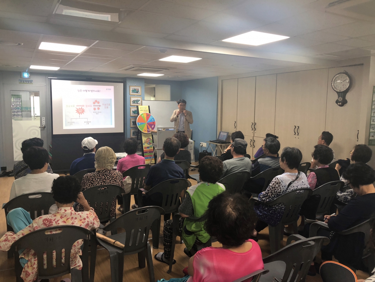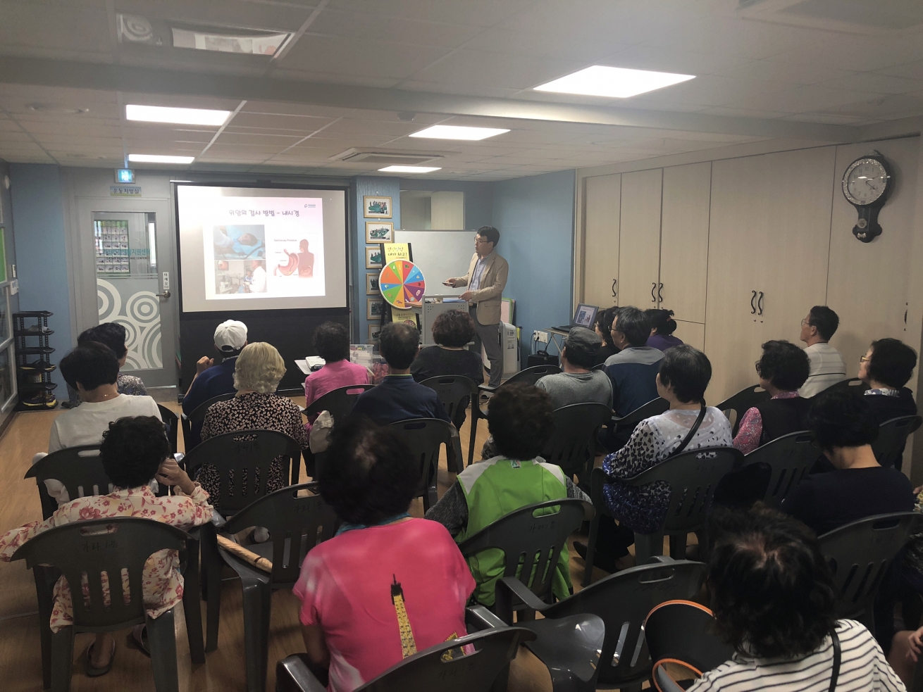 2018년 9월 12일 서구 지역주민을 대상으로 가좌 건강생활 지원센터에서 위암 치료 및 예방관리에 대해 가천대 길병원 종양내과 심선진 교수가 교육을 실시 하였습니다.