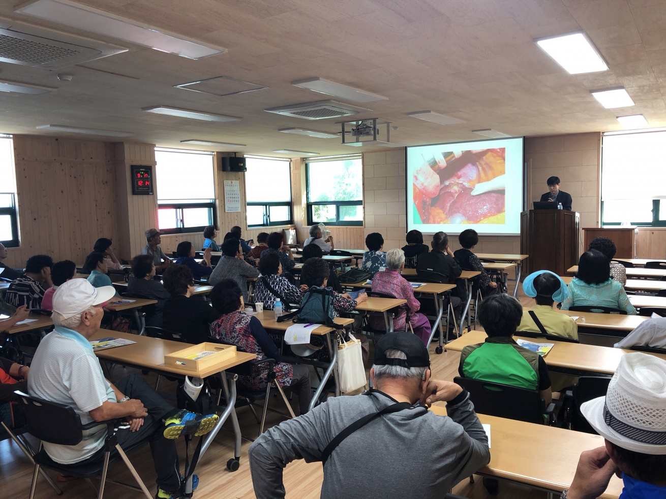 2018년 9월 17일 중구 지역주민을 대상으로 중구 노인복지관에서 간암·췌장암 치료 및 예방관리에 대해 가천대 길병원 외과 김두진 교수가 교육을 실시 하였습니다.