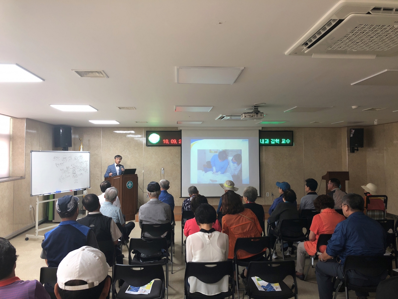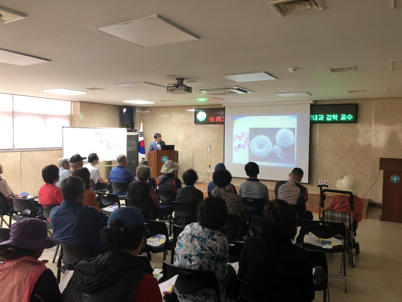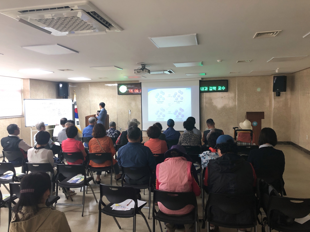 2018년 9월 27일 부평구 지역주민을 대상으로 청천보건지소에서 혈액암 치료 및 예방관리에 대해 가천대 길병원 혈액내과 김혁 교수가 교육을 실시 하였습니다.