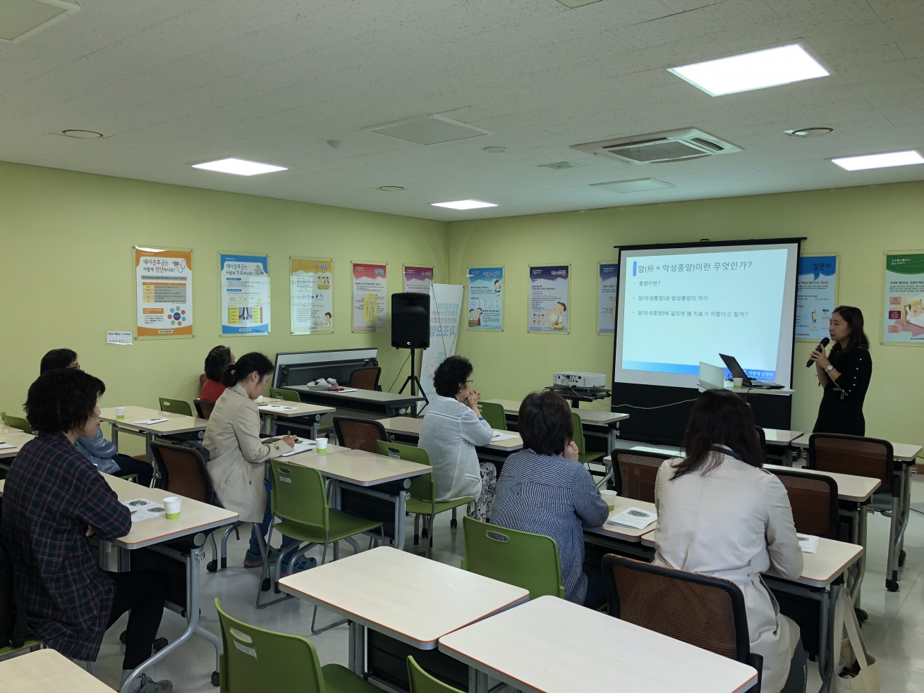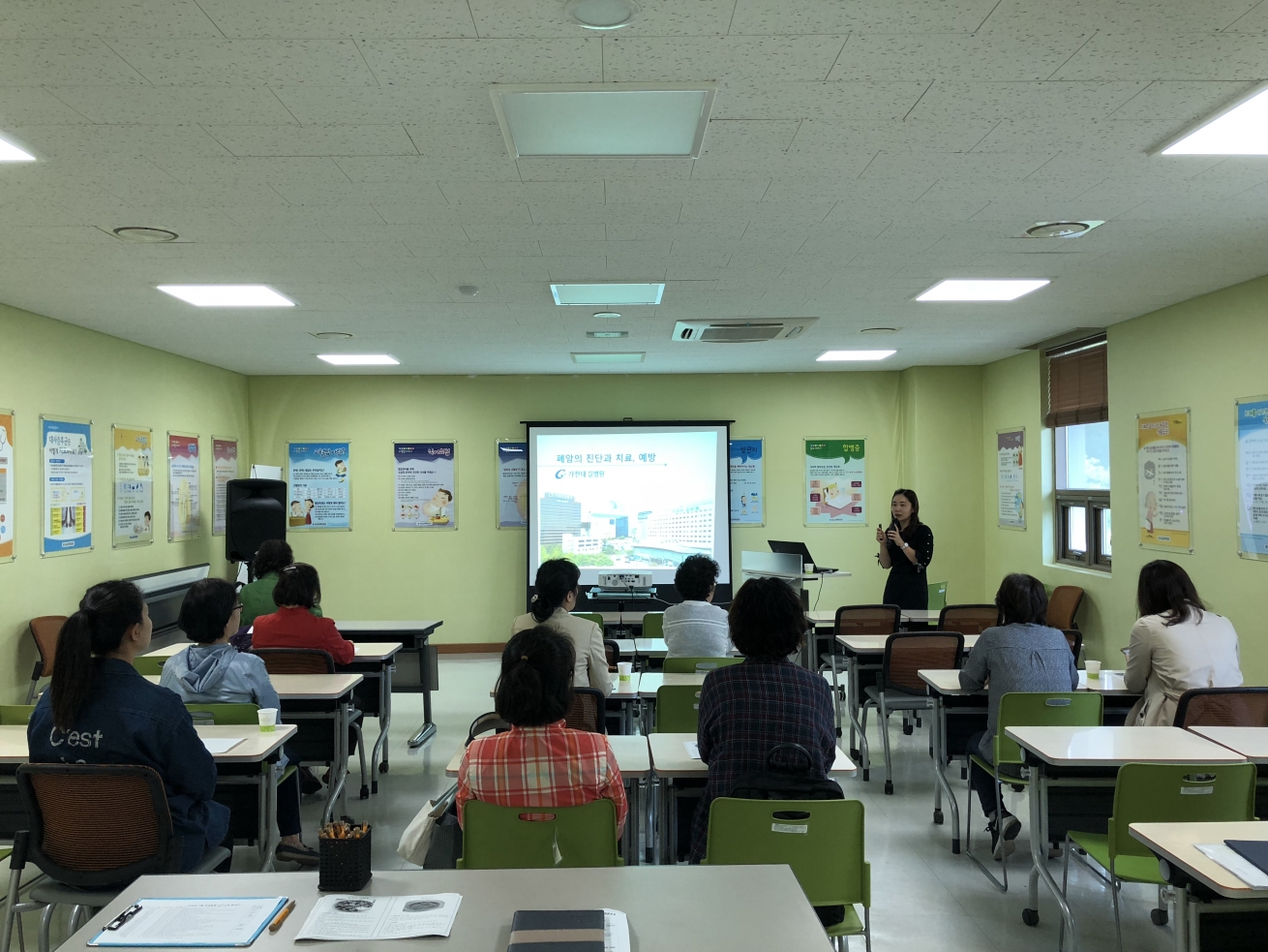 2018년 5월 24일(목) 연수구 송도건강생활지원센터 에서 주민 30명을 대상으로 종양내과 안희경 교수는 폐암 치료 및 예방 관리에 대한 교육을 하였습니다.