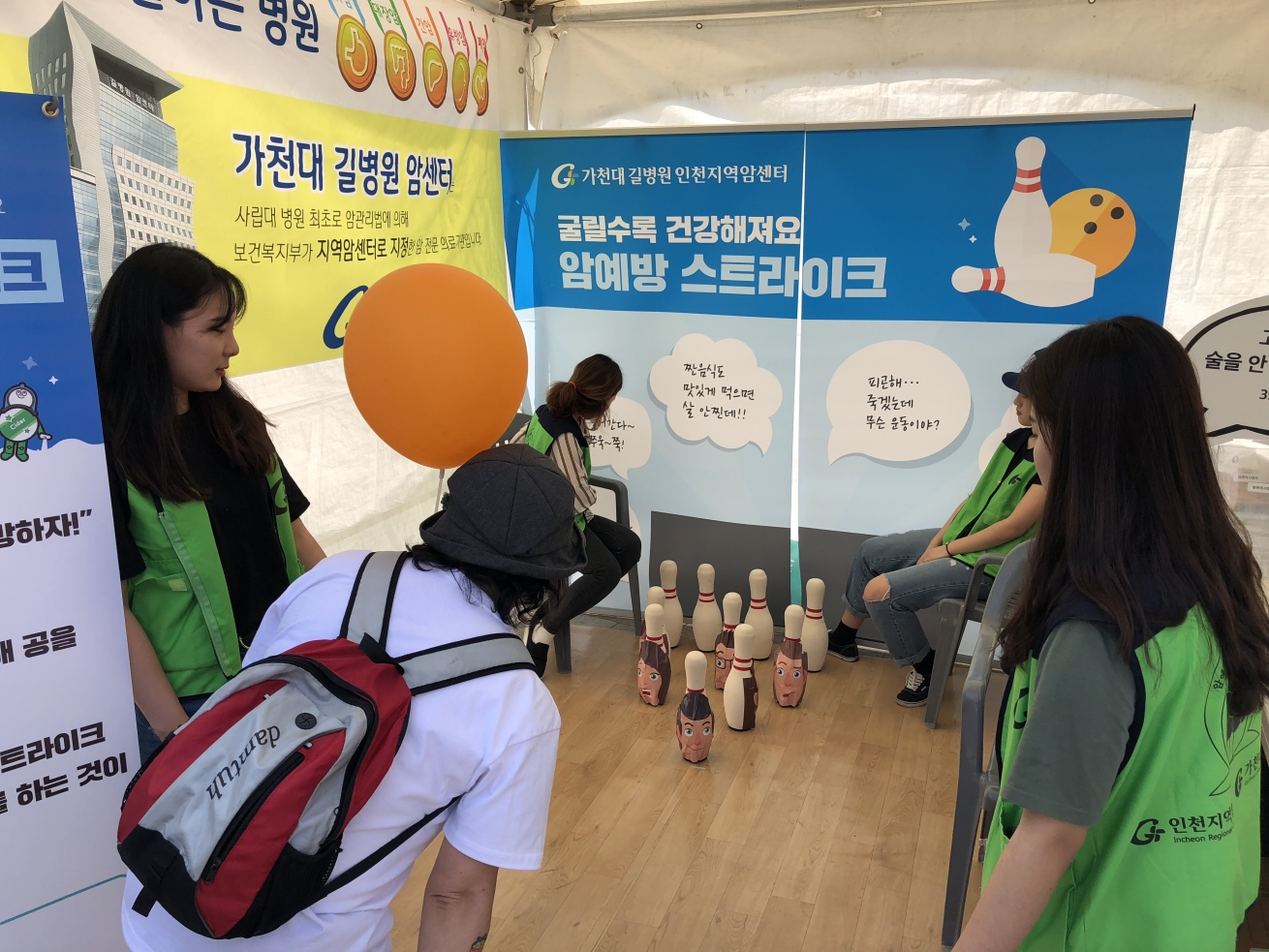 인천지역암센터는 행사에 참여한 많은 시민들에게 암예방에대한 홍보와 소정의 기념품을 드렸습니다.