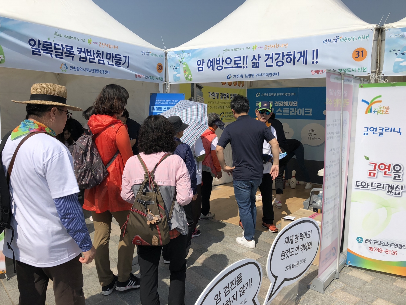 인천지역암센터는 5월 26일(토) 인천 월미도에서 열린 '2018년 금연체험대전' 에 참여하였습니다.