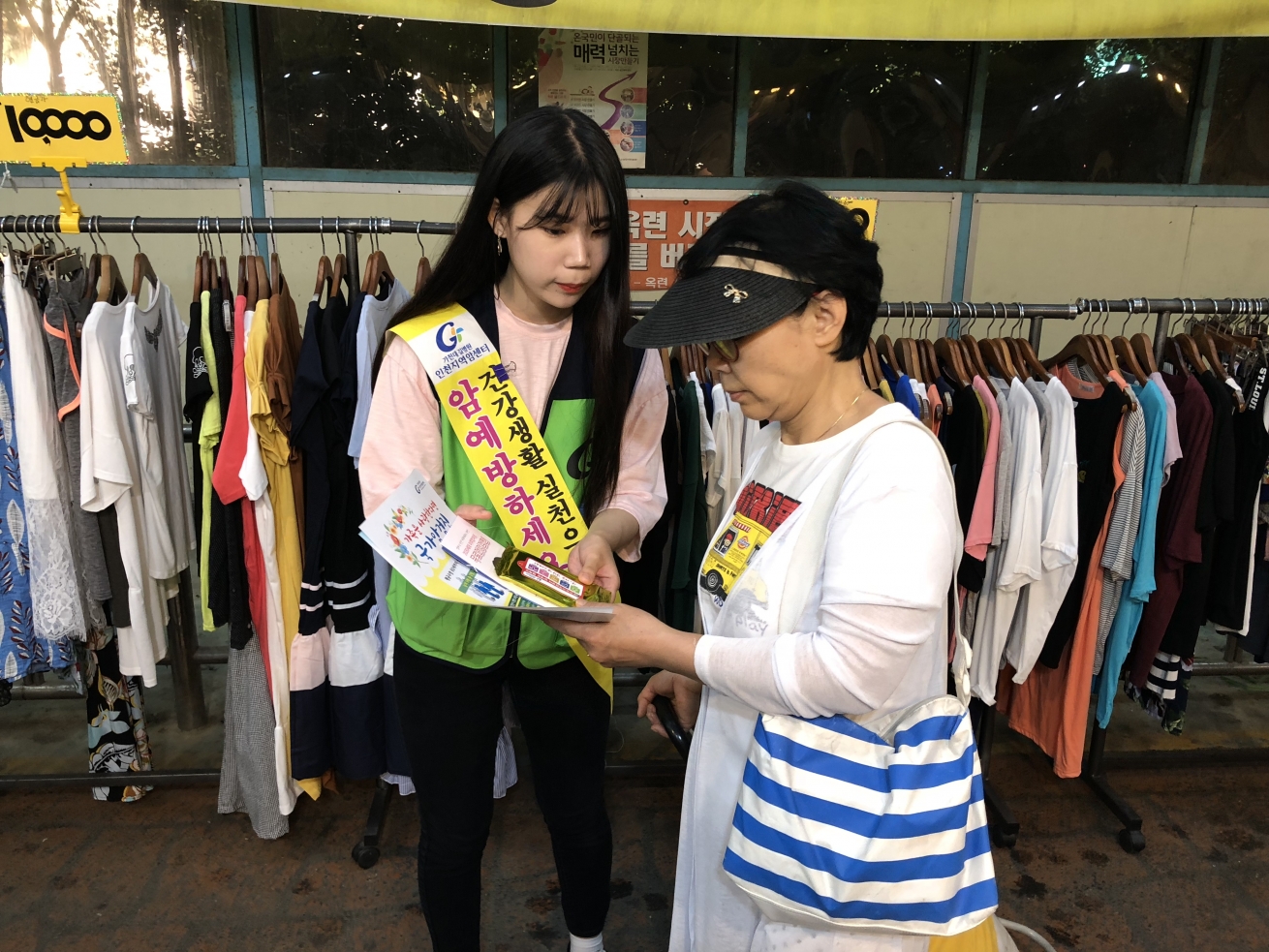 2018년 6월 18일(월요일) 인천지역암센터 암예방 서포터즈 연수구보건소와 함께 연수구 옥련시장에서 인천지역 주민들을 대상으로 암예방과 검진에 대해 거리 홍보캠페인을 하였습니다