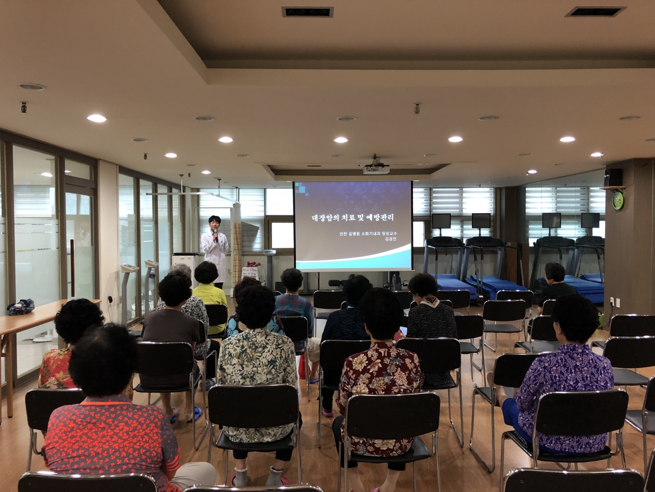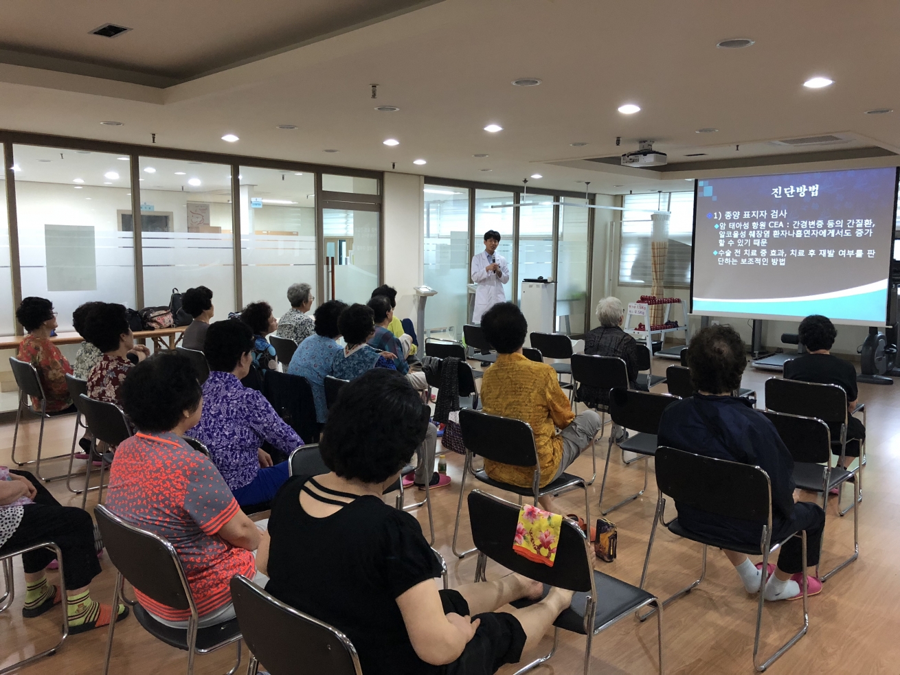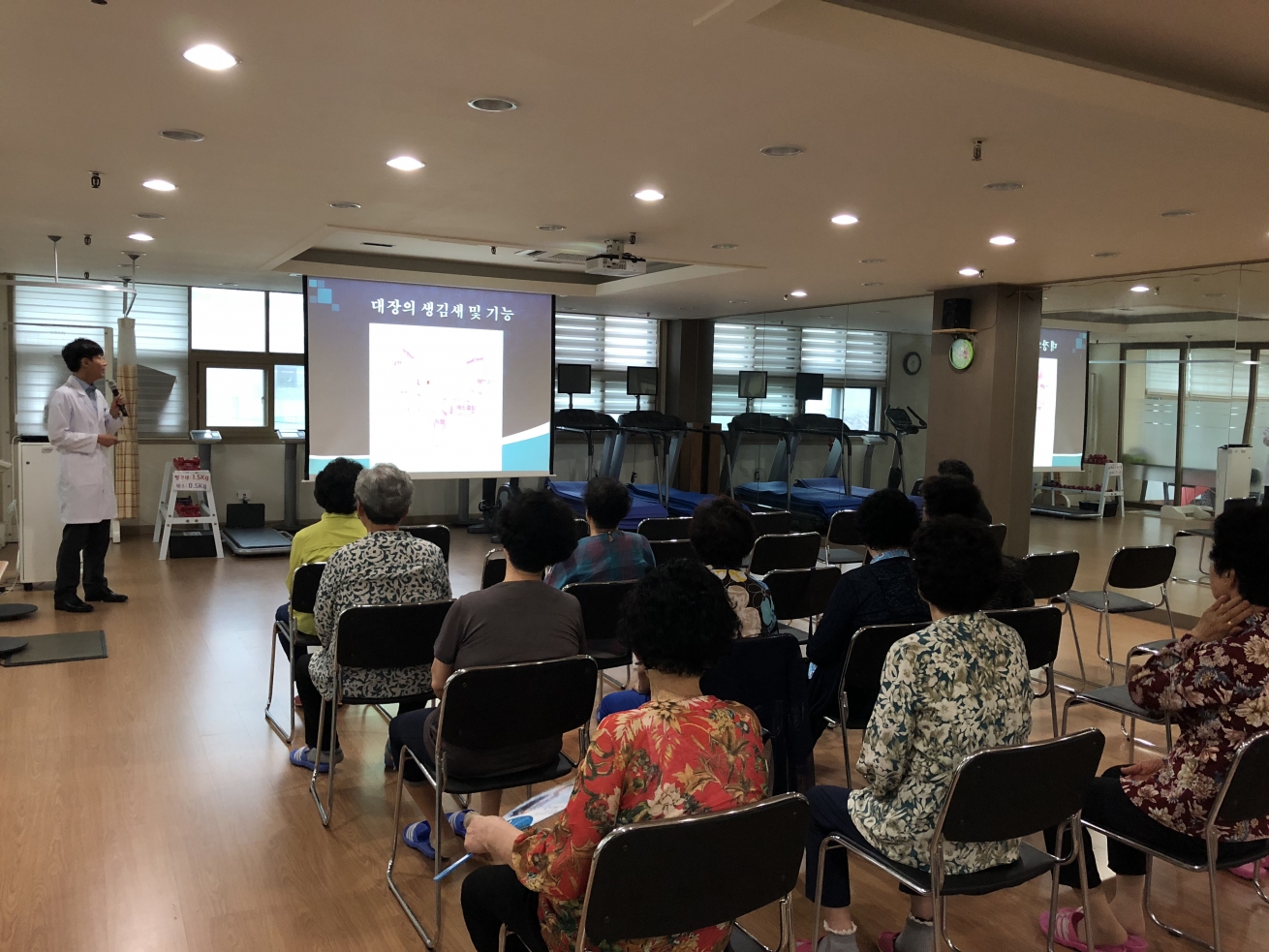 6월 26일 (화) 가천대 길병원 소화기내과 김경민 교수가 효성건강생활지원센터 30여명을 대상으로 대장암 치료 및 예방관리,대장암 발생의 원인,암예방과 조기암검진의 중요성 등에 대해서 교육하였습니다.