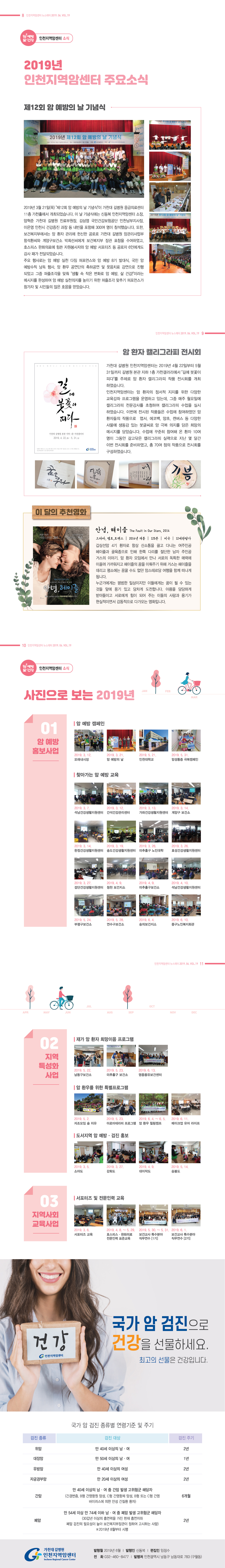 [인천지역암센터 뉴스레터] 제 19호 페이지 정보 작성자 인천지역암센터 관리자 작성일19-06-21 13:21 조회3,475회 관련링크 본문 인천지역암센터의 뉴스레터 2019년 6월 제 19호입니다. 이전글 다음글 목록